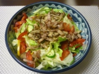 トッピングにしてサラダにします。味付けは塩とコショウとアップルビネガーそれにエキストラバージンオイル。ヘルシーでパワーもつきます。